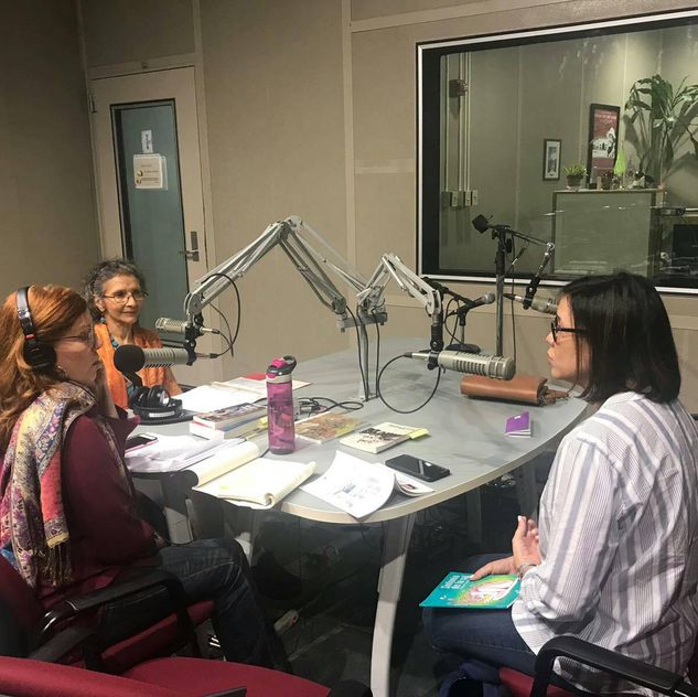 El programa se graba semanalmente en los estudios de Cadena Radio Universidad de Puerto Rico. Algunas poetas de la primera temporada, de izq. a der.: Mara Pastor, Myrna Nieves y Denisse Español y Áurea María Sotomayor.