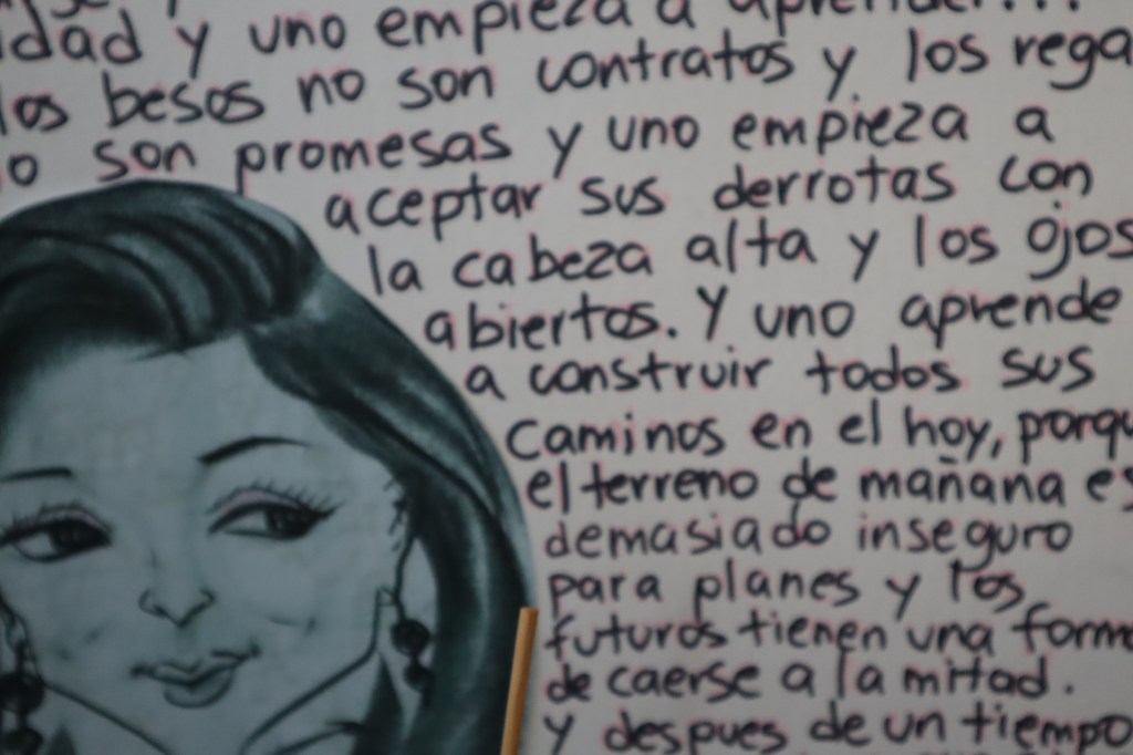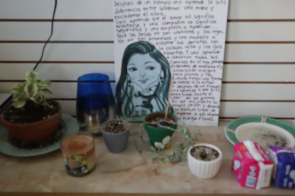 No sé quién es la autora del texto escrito a mano que se exhibe en el Centro de la Mujer Dominicana en Río Piedras, Puerto Rico sobre una mesita baja que, de no ser porque tiene dos bolsitas con toallas sanitarias colocadas cerca de un par de plantas y velas aromáticas parecería un altar doméstico.
